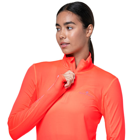 Introducing our lightweight thermal base-layer, designed for maximum comfort and visibility on cooler days. Ideal for wearing next to the skin, this half-zip features new iridescent reflective strips and a 360º reflective print to ensure you stay seen during low-light runs. Made from super-soft polyester with a peached finish and a modern marl look, the fabric delivers excellent moisture-wicking and evaporation, as confirmed by independent lab and wearer trials. The front zip offers flexible ventilation for when you warm up on your run, while the cosy high collar and thumb loops provide added comfort and coverage.