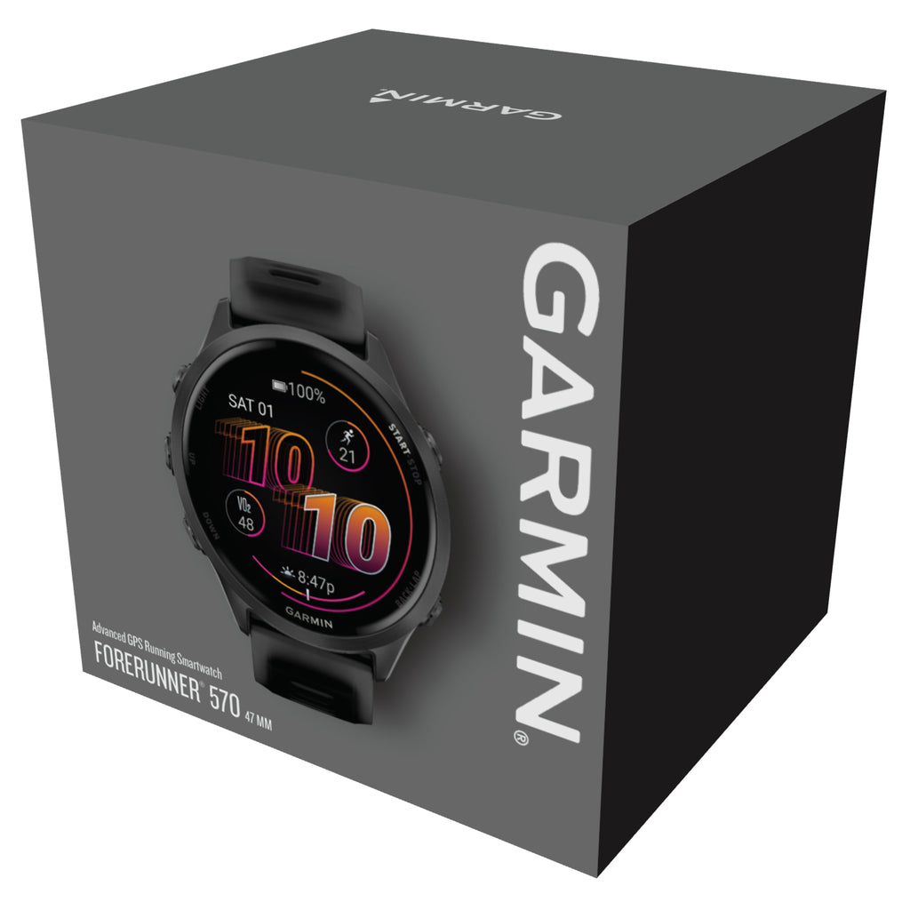 Forerunner 570 47MM Slate Gray Aluminium with Translucent BlackBrand:Garmin Code:010-02971-00For dedicated runners chasing goals, there’s Forerunner® 570 — the GPS running smartwatch with our brightest AMOLED display, aluminium bezel and advanced training features.